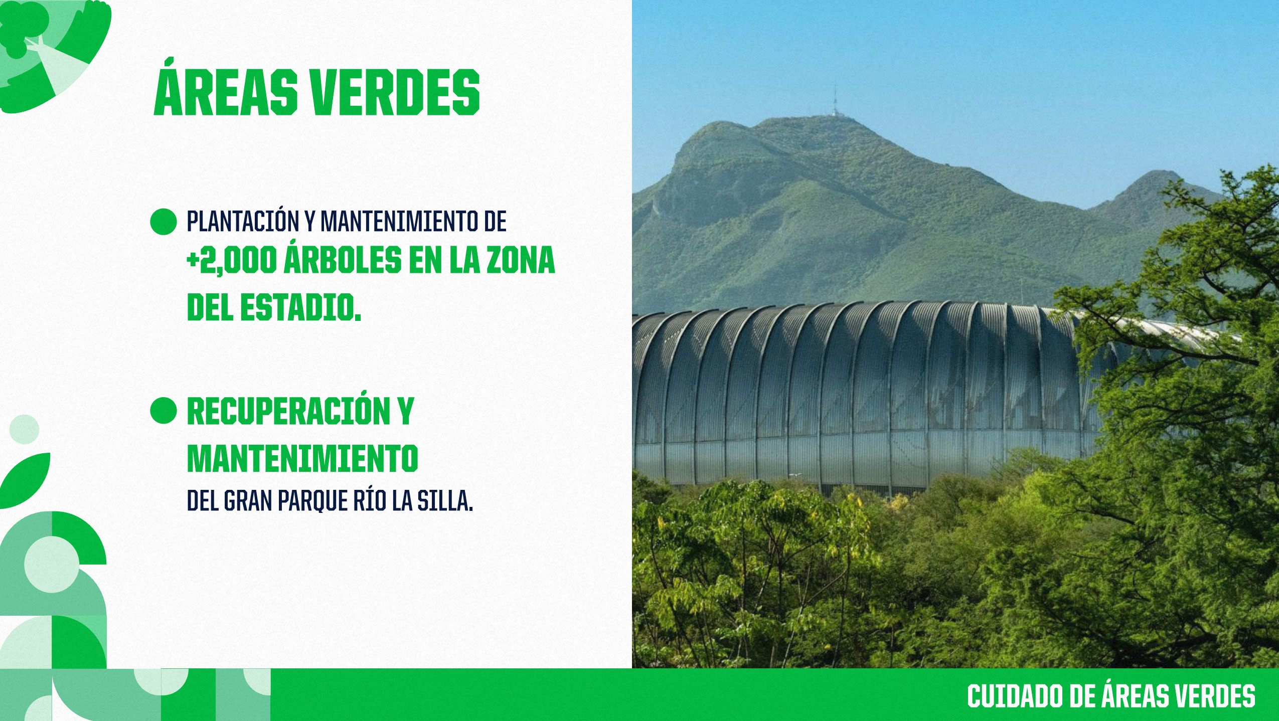 Continuamos conservando el Gran Parque Río La Silla, pulmón natural, público y gratuito que cuenta con más de 500 especies nativas, 13 km de extensión y más de 193,000 m² de cobertura vegetal que abraza nuestra Casa Rayada.