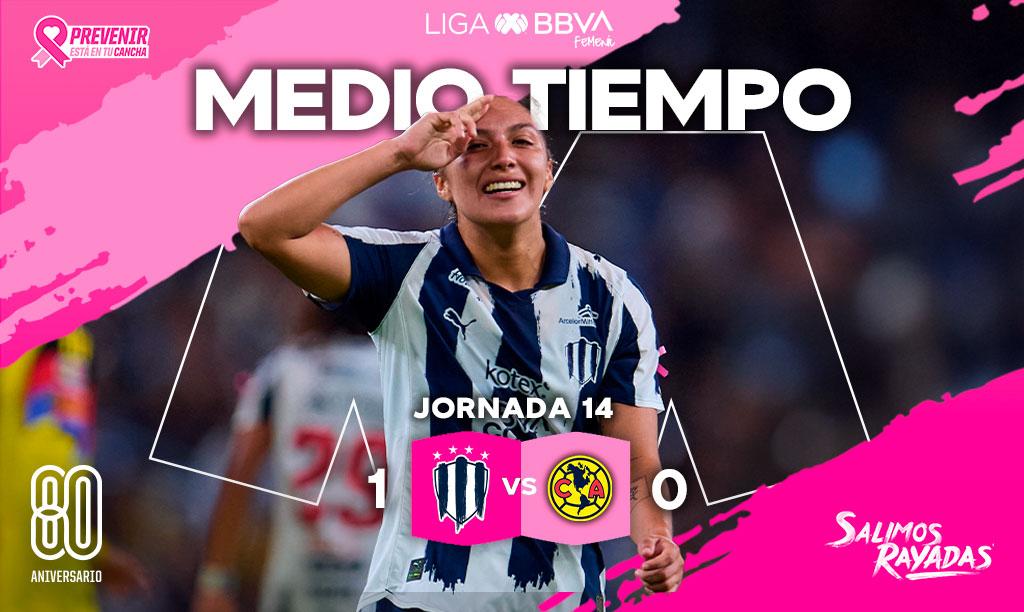 Al medio tiempo en el Estadio BBVA, las Rayadas de Monterrey vencen 1-0 a las Águilas del América en el partido de la Jornada 14 del Torneo Apertura 2025.
