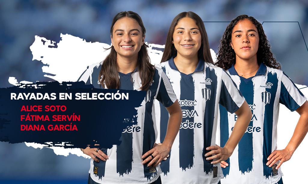 Diana Garcia, Fátima Servín y Alice Soto, jugadoras de las Rayadas de Monterrey, fueron convocadas por Pedro López, director técnico tricolor, para representar a México en estos compromisos.