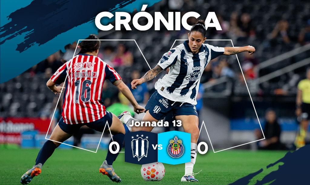 Monterrey empató 0-0 con Chivas Femenil en el partido de la Jornada 13 y se mantiene como líder e invicto en el Torneo Clausura 2026.