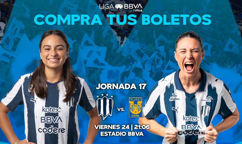 Venta para abonados de Rayadas y Rayados: recibirás un correo con un código especial para comprar tus boletos a precio preferencial de $100 del lunes 20 al miércoles 22 a las 23:59 horas.